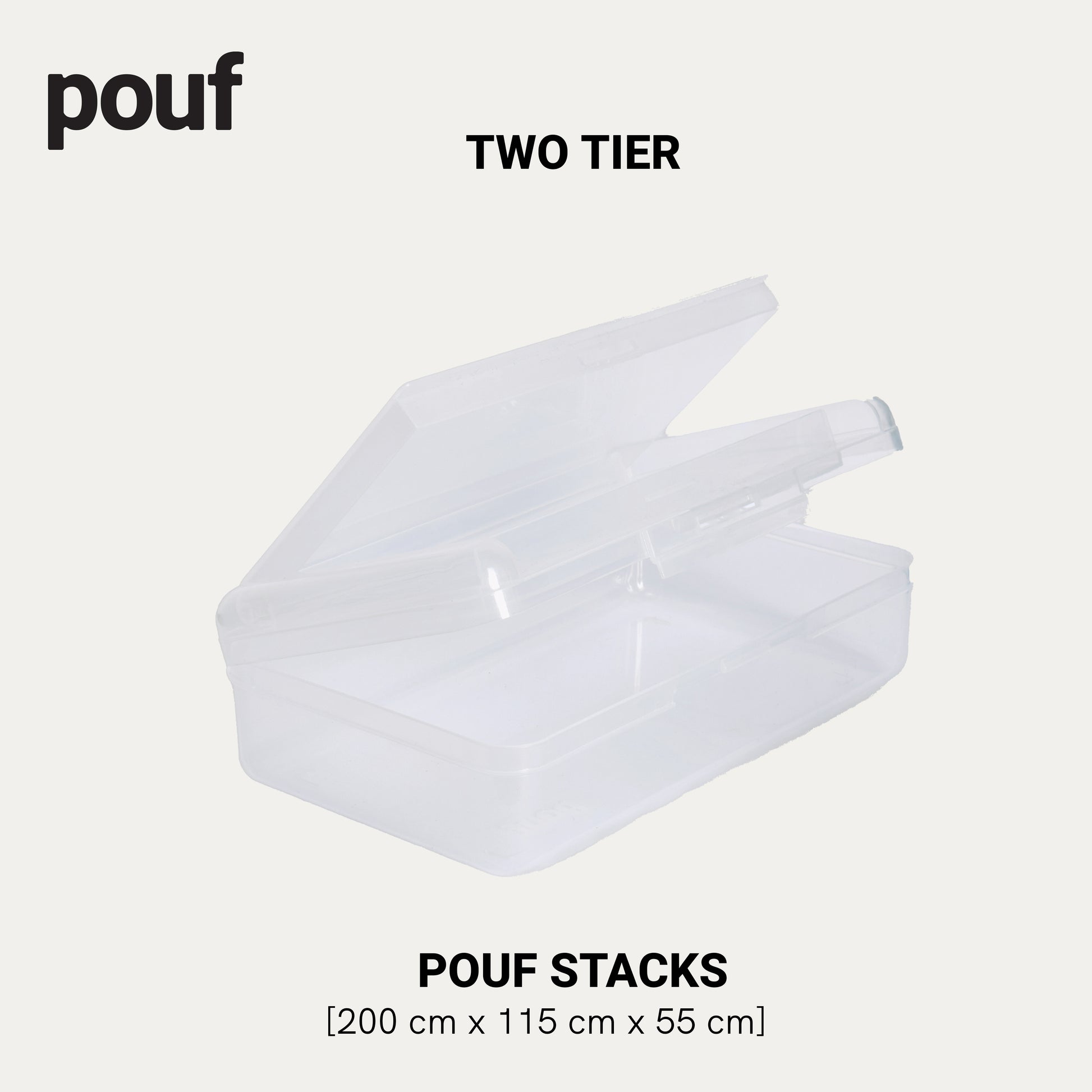 Say hello to your new go-to for sorting the unsortable. Pouf Stacks are double-tiered clear organizers made to handle your everyday chaos—from tangled wires and adapters to pill packets and first-aid kits. Separate the essentials from the extras. The small from the bulky. The used from the unopened.