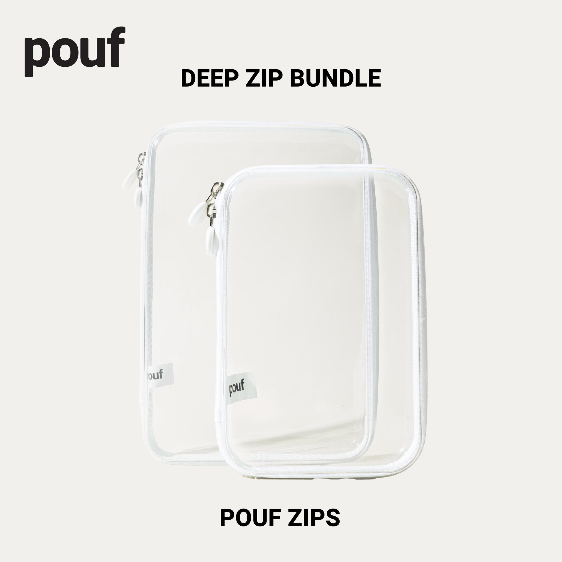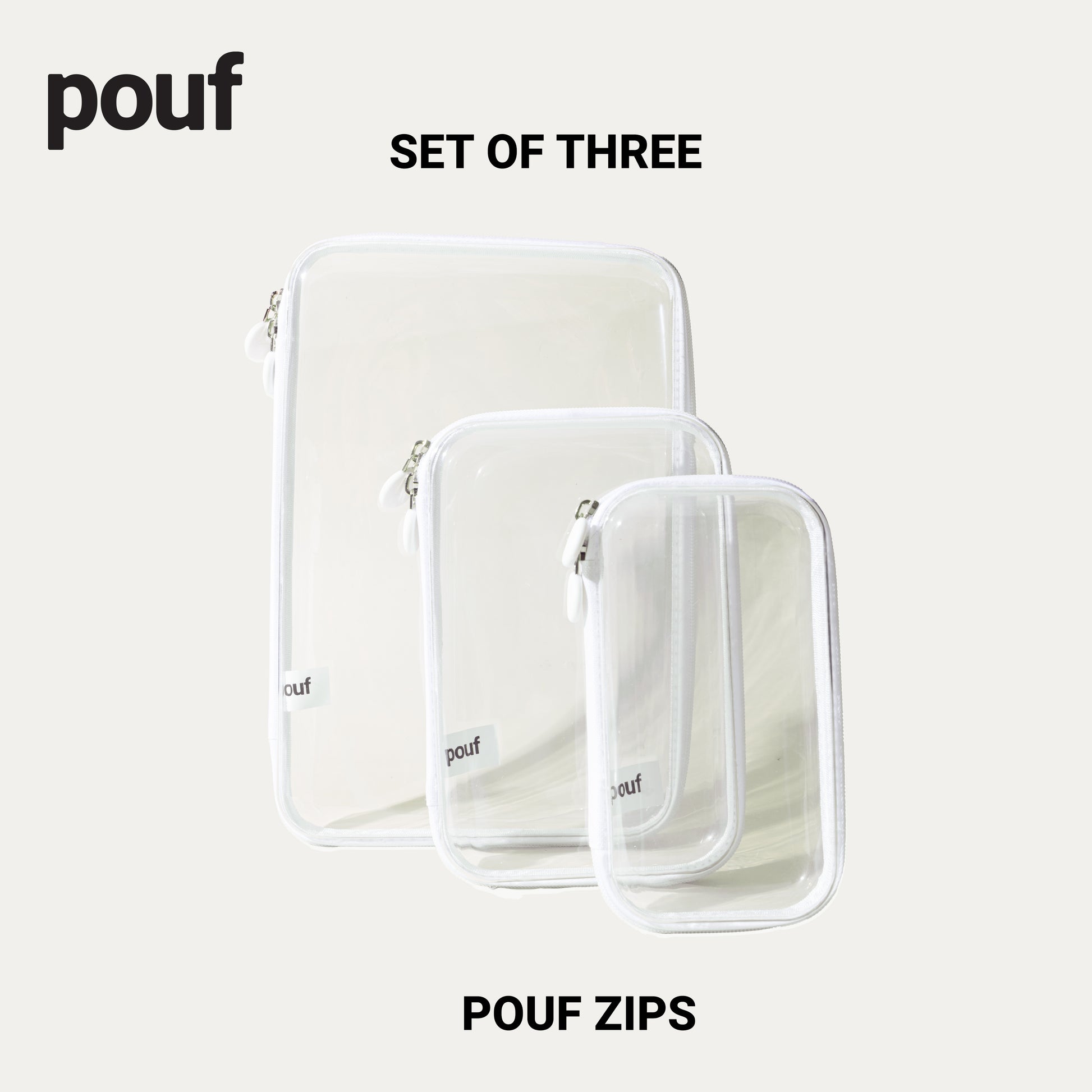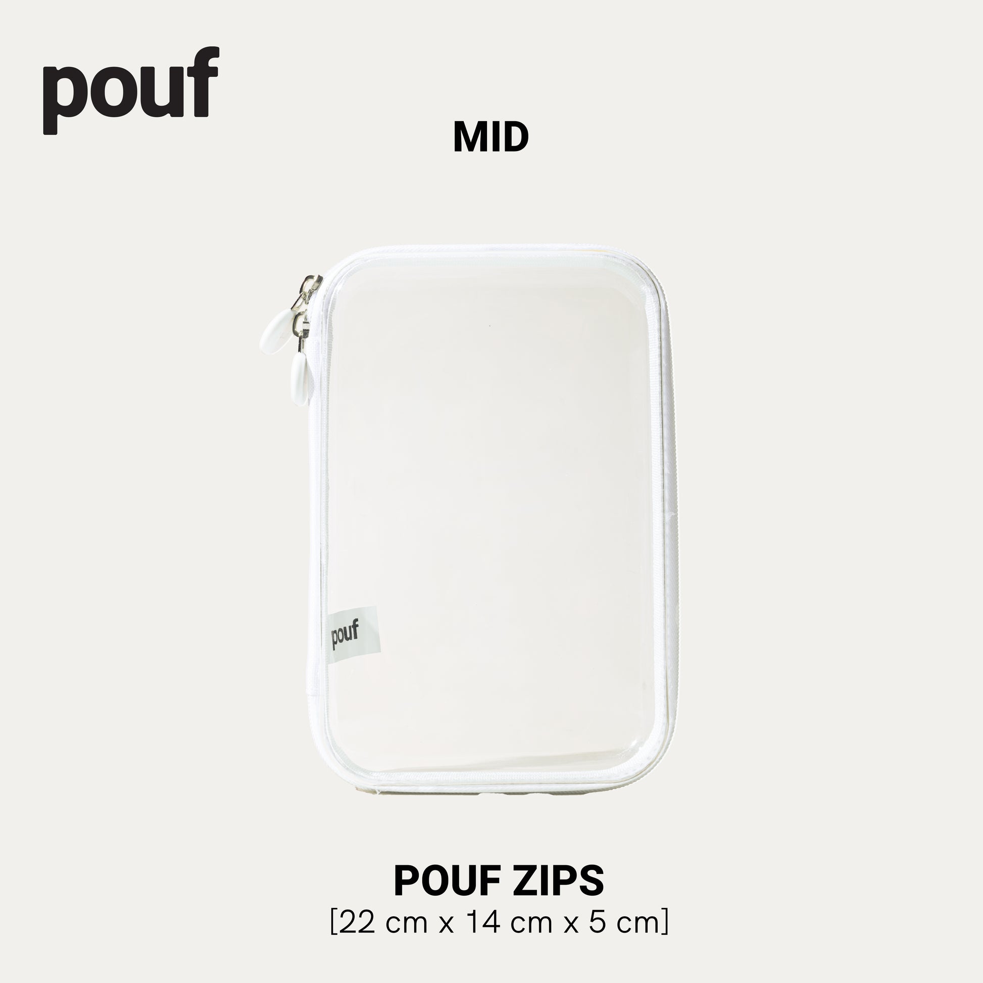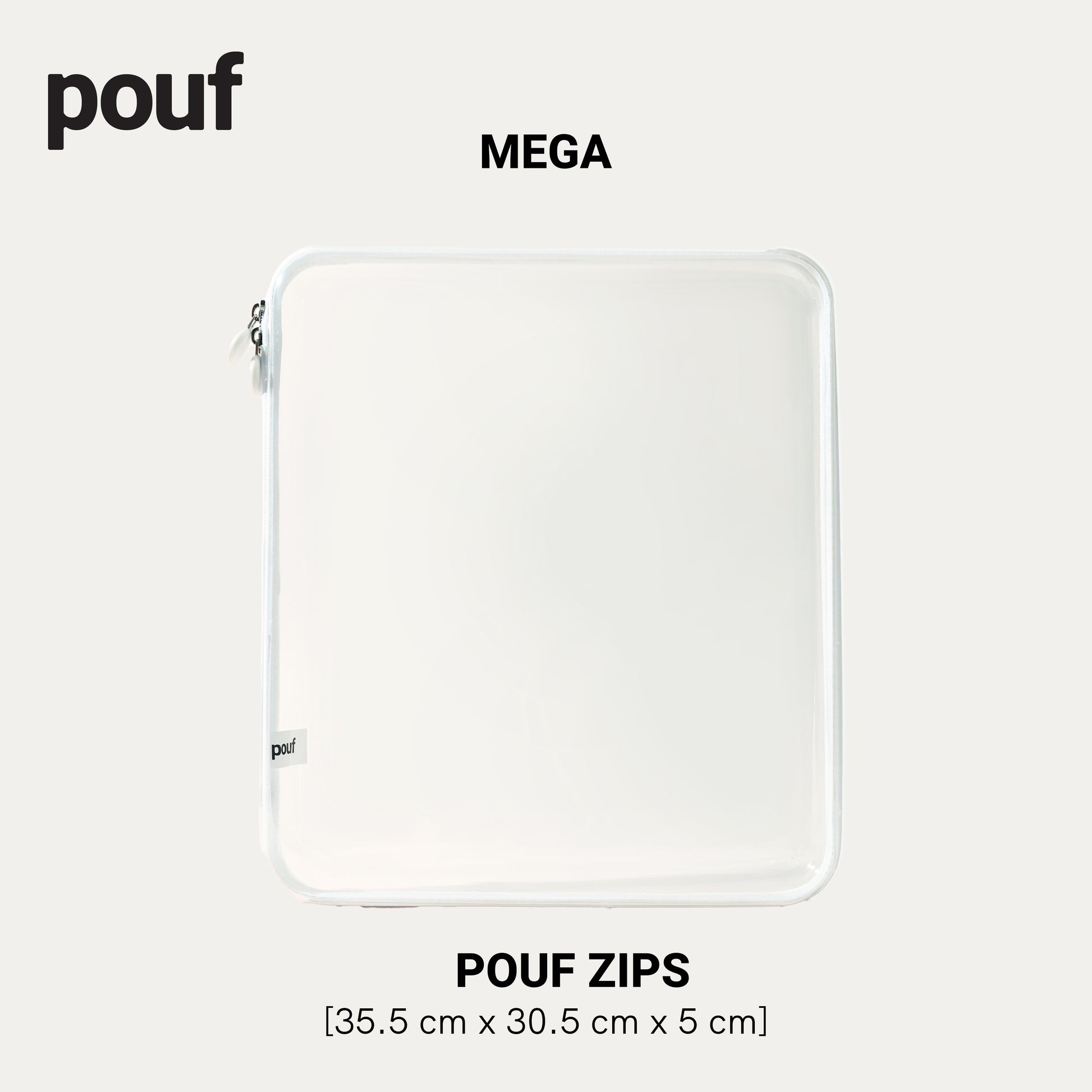 See everything, grab anything. PoufZips transparent design means you’ll always know what’s inside without even opening it. The large, round zipper is easy to grasp, making it accessible and user-friendly for everyone.